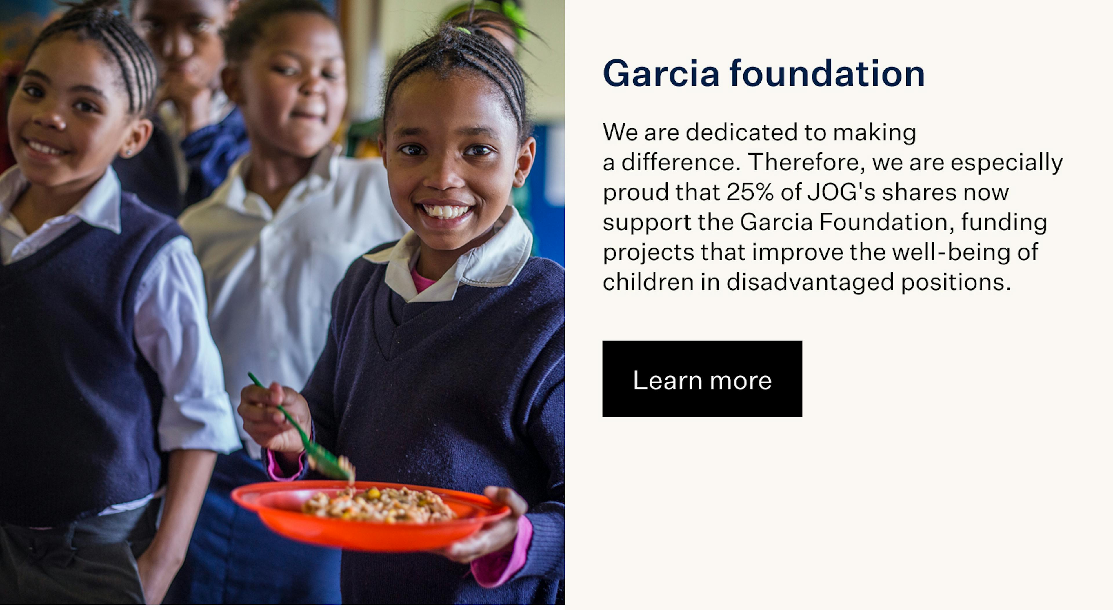 This belief is reflected in our Responsible Journey Together strategy, which is built on four key pillars: Product, Environment, Governance and Social. Through this approach, we are committed to making a positive impact and driving meaningful change. Garcia is part of JOG Group B.V. and therefore follows the JOG Group Corporate Sustainability Strategy.